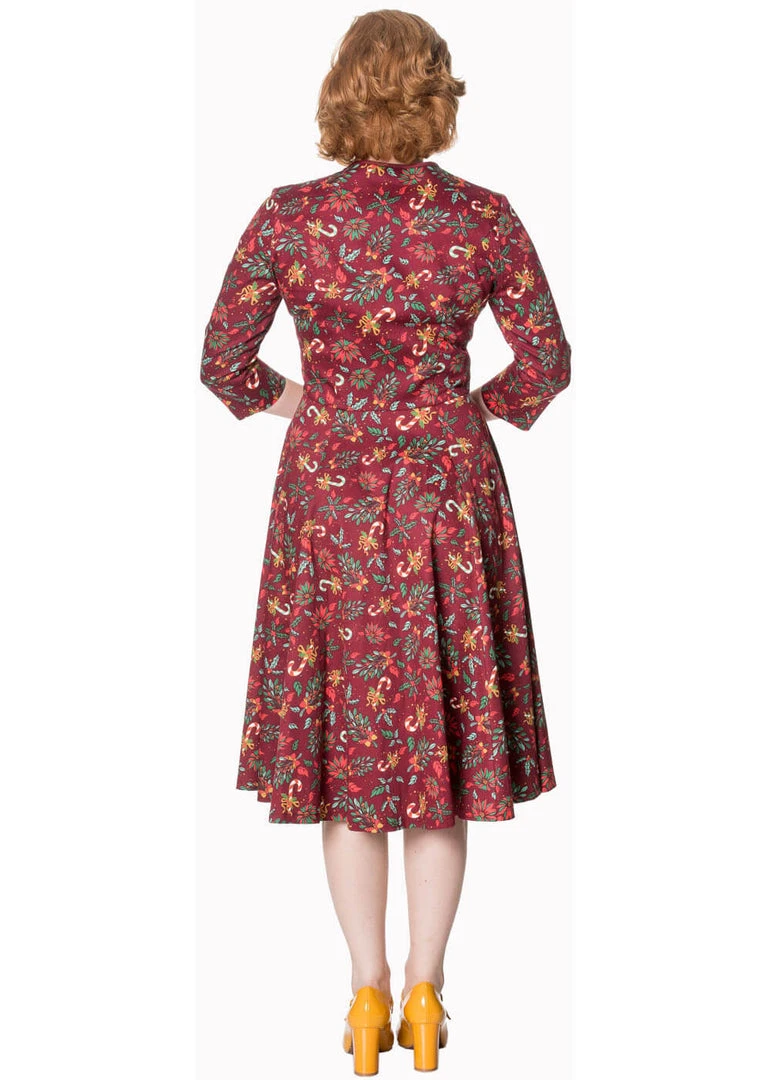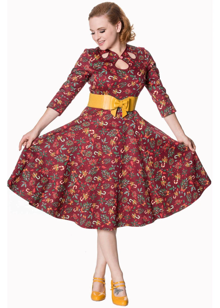 Als de herfst voorbij is kijken we uit naar de kerst, en Autumn Leaves is de perfecte jurk voor die overgang! De print van snoepstokjes brengt je gelijk in feeststemming, terwijl het prachtige burgundy katoen deze beauty onweerstaanbaar zal maken om alvast in de herfst te dragen. Door het 3/4 mouwtje hoeft dat ook niet!