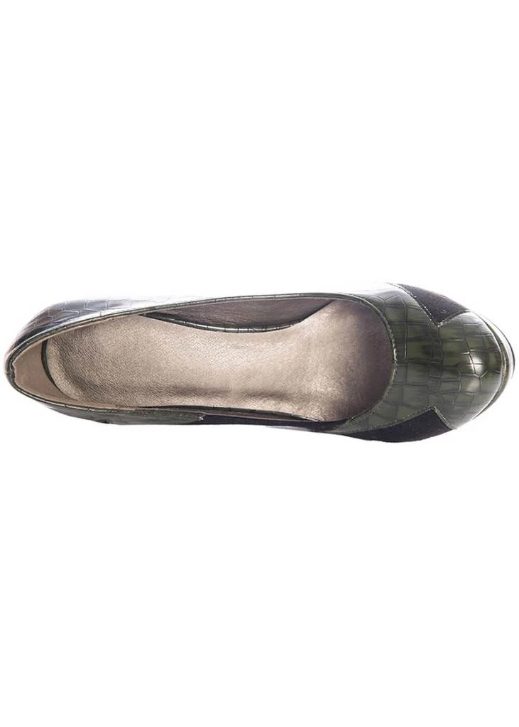 Her mix of faux-suede and faux-snakeleather adds a strong look, and yet so very elegant. Perfect for wearing in the meeting room and that cute date 😉 She has a wide 9 cm heel, but because of her 1,5 platform she feels less tall to walk on. Add a soft footbed to that and you’ll want to wear these cuties day and night.