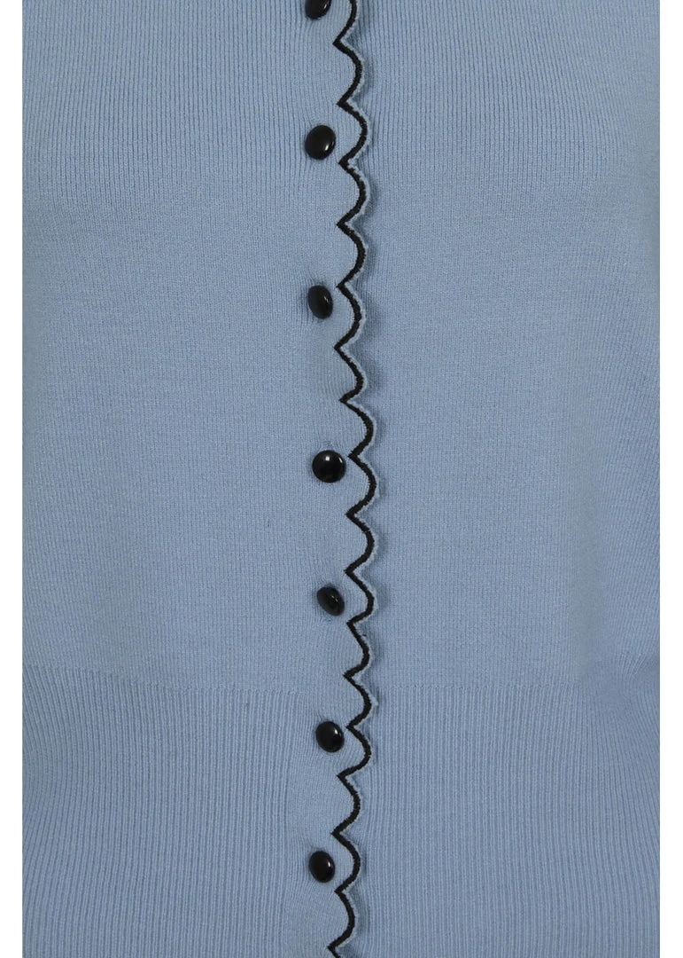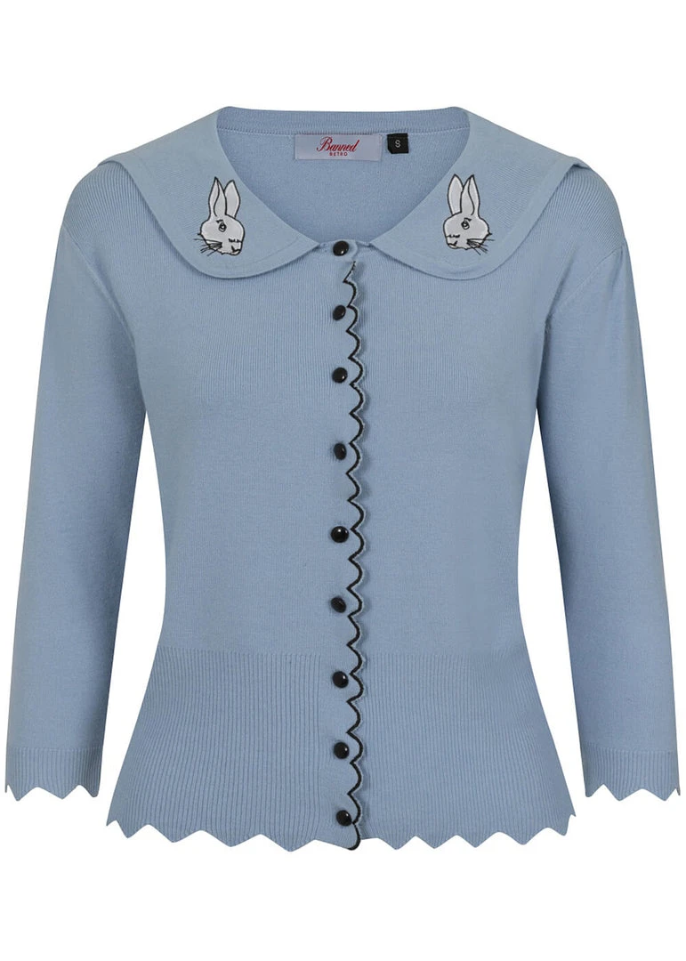 They’re wispering sweet things, the little rabbits on the Peter Pan collar! This highlight of cuteness is made of a soft mix with viscose and nylon, that feels nice and soft and has a fine stretch. She closes with smooth buttons in the front, that is playfully decorated with a wavy edge, which is extra flashy thanks to the contrast stitches. The bottom seam and the ends of the sleeves are also wavy and keep the warmth where we want it: inside 😉