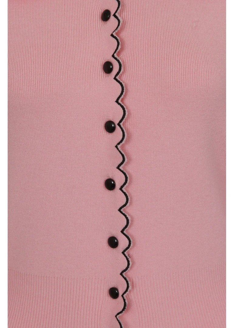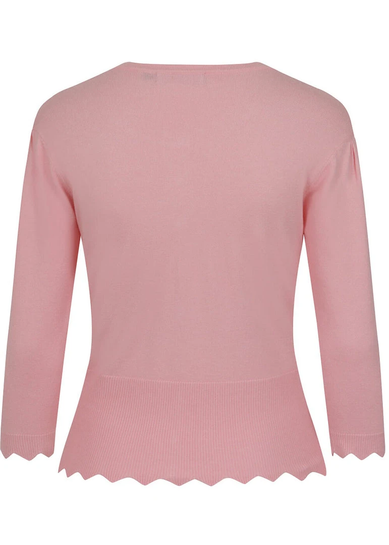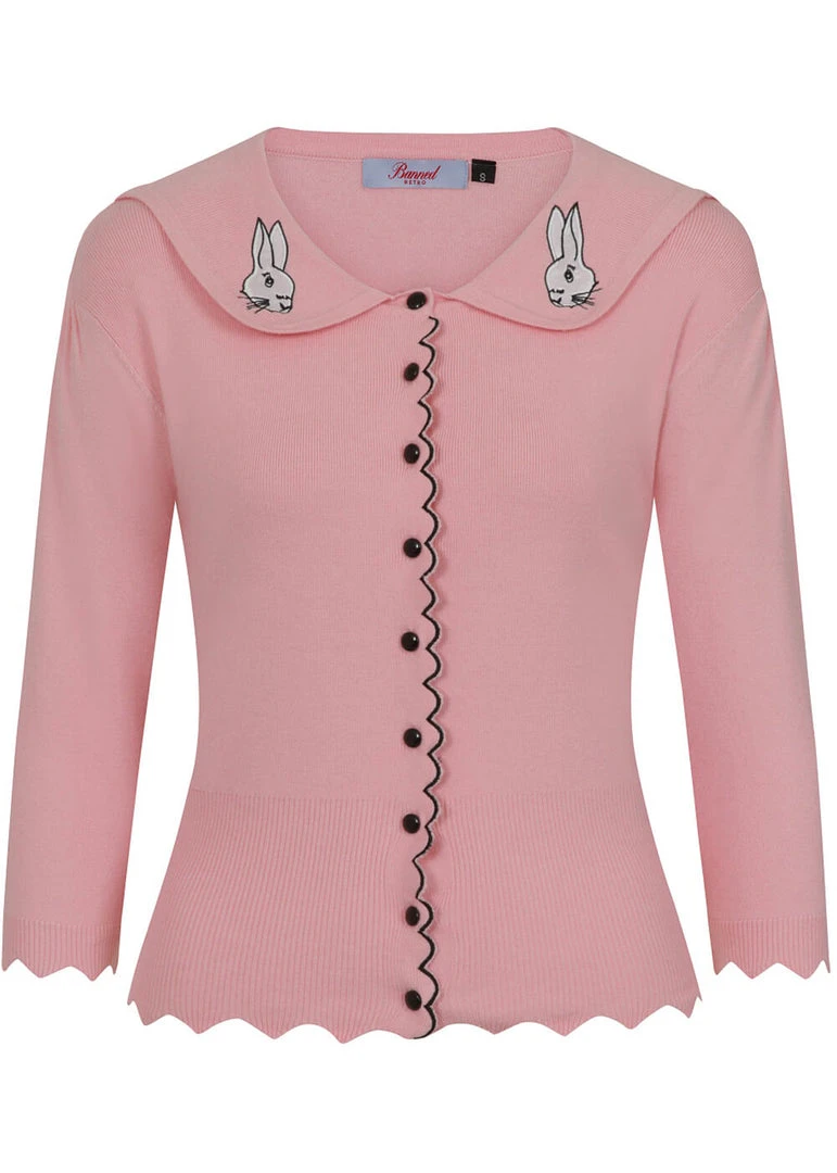 They’re wispering sweet things, the little rabbits on the Peter Pan collar! This highlight of cuteness is made of a soft mix with viscose and nylon, that feels nice and soft and has a fine stretch. She closes with smooth buttons in the front, that is playfully decorated with a wavy edge, which is extra flashy thanks to the contrast stitches. The bottom seam and the ends of the sleeves are also wavy and keep the warmth where we want it: inside 😉