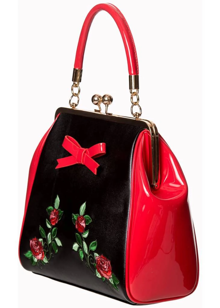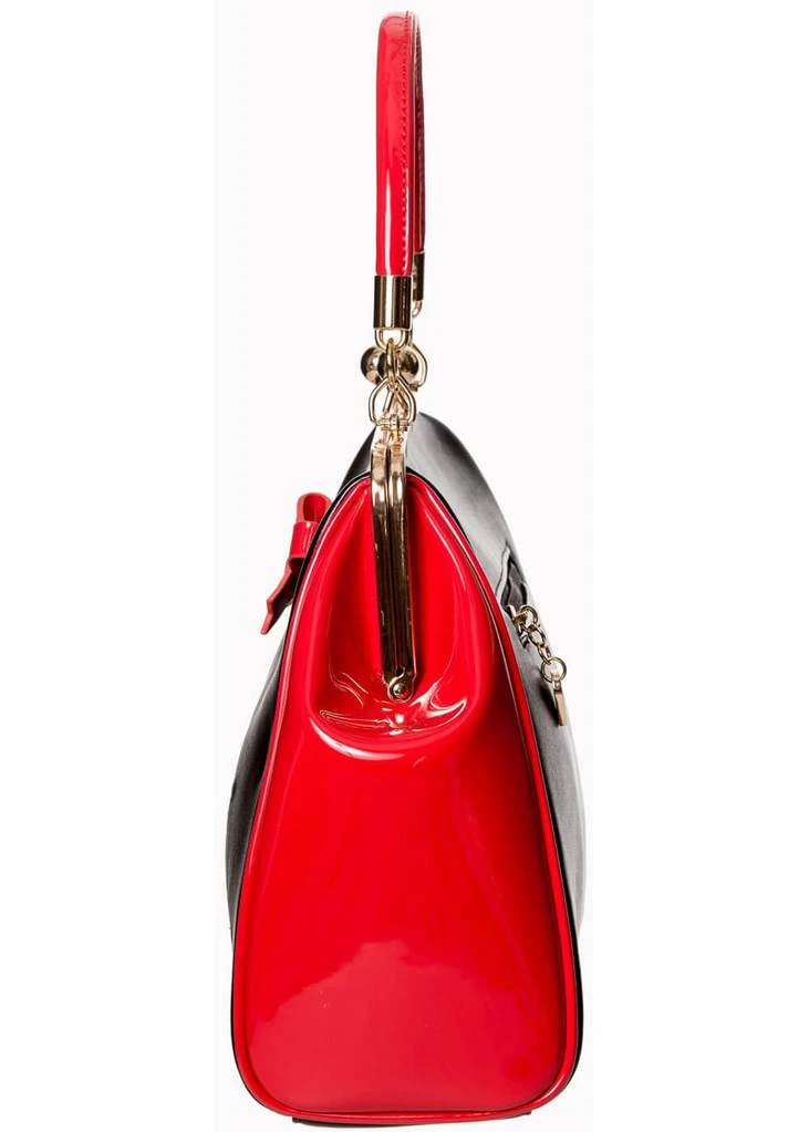 The bow and sides are made out of red lacquer, while the black is made of a beautiful faux leather. She’s convenient as well, with enough room to fit your most important things such as your phone and keys. The well placed flower makes your outfit look even more beautiful 😉