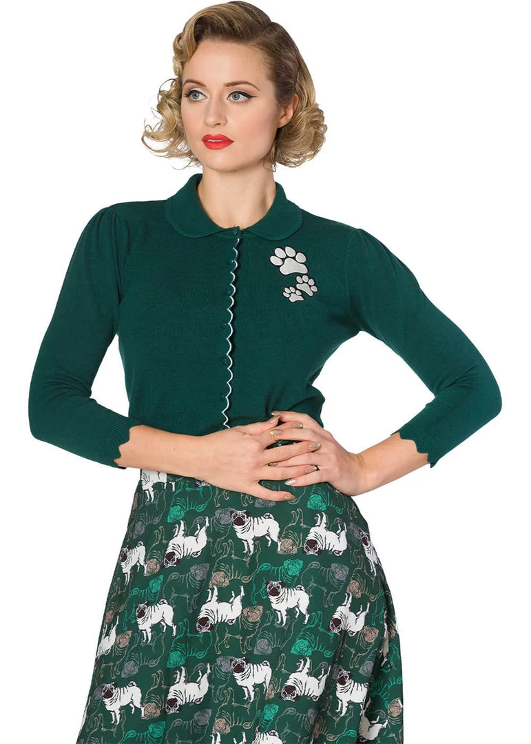Follow the playful pawprints! Just like we’re used to from Banned, this beauty is made of a lovely soft viscose-mix, that wears heavenly and gives her a slight stretch. She closes with smooth buttons in the front. The ribbed seams on the sleeves and at the bottom keep the warmth.