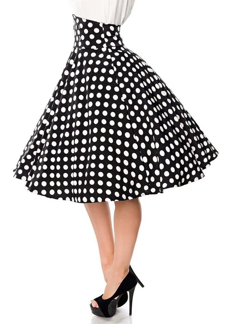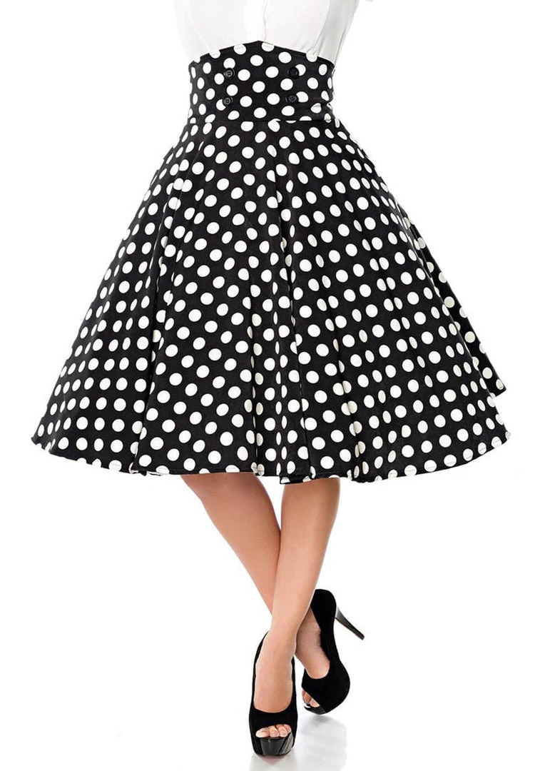 Named after the city where the New Look was born, those special vibes are undeniable in the Paris skirt! The high waist has a subtle v-shape upwards and decorative buttons to accentuate it. From there, it flares out to a full-circle skirt, that can be worn with one of our petticoats like in the picture.