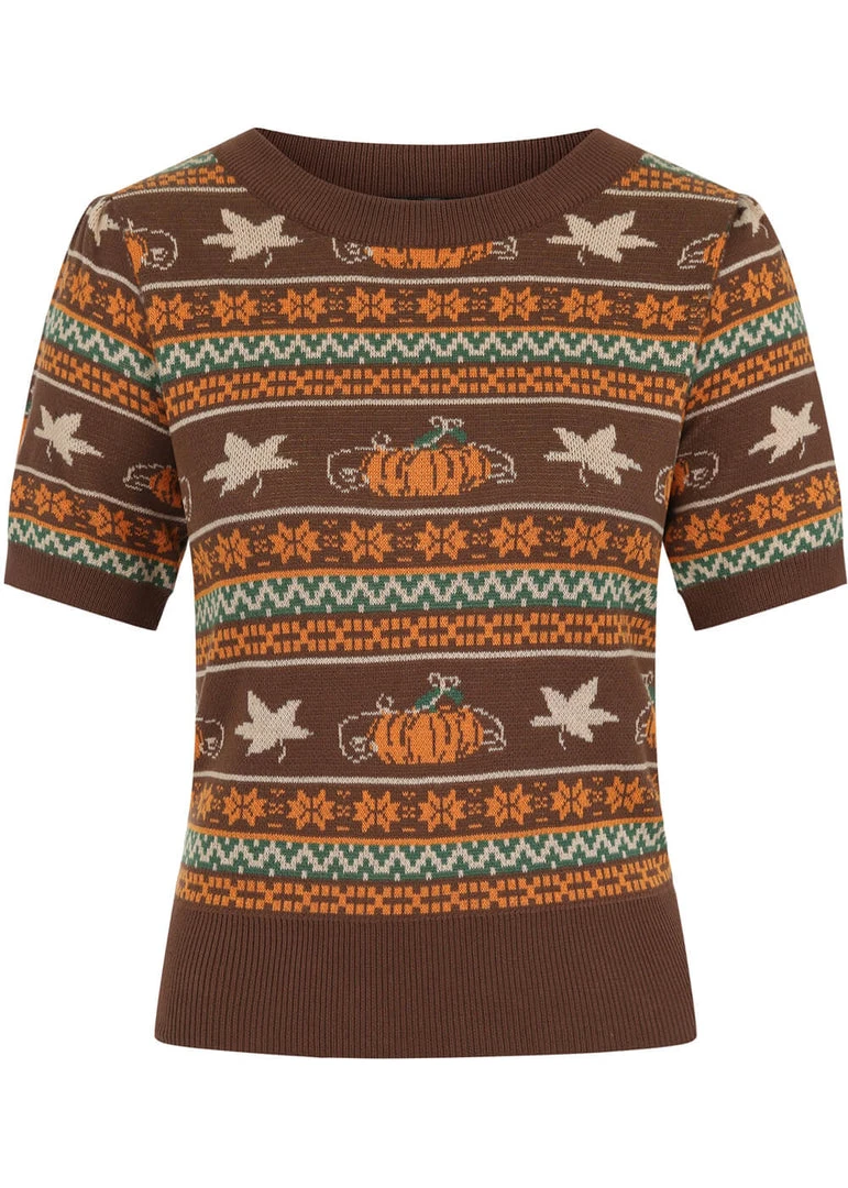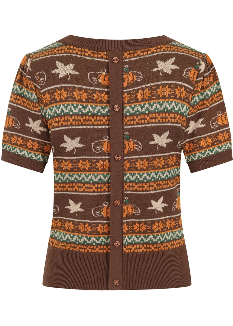 This lovely warm jumper is made of a thicker knitted cotton with fine stretch, which makes her cozy to wear and nicely closefitting. The hems of the top and the sleeves are ribbed for that playful 60’s jumper look. The decorative buttons on the back are completing the 60’s picture.