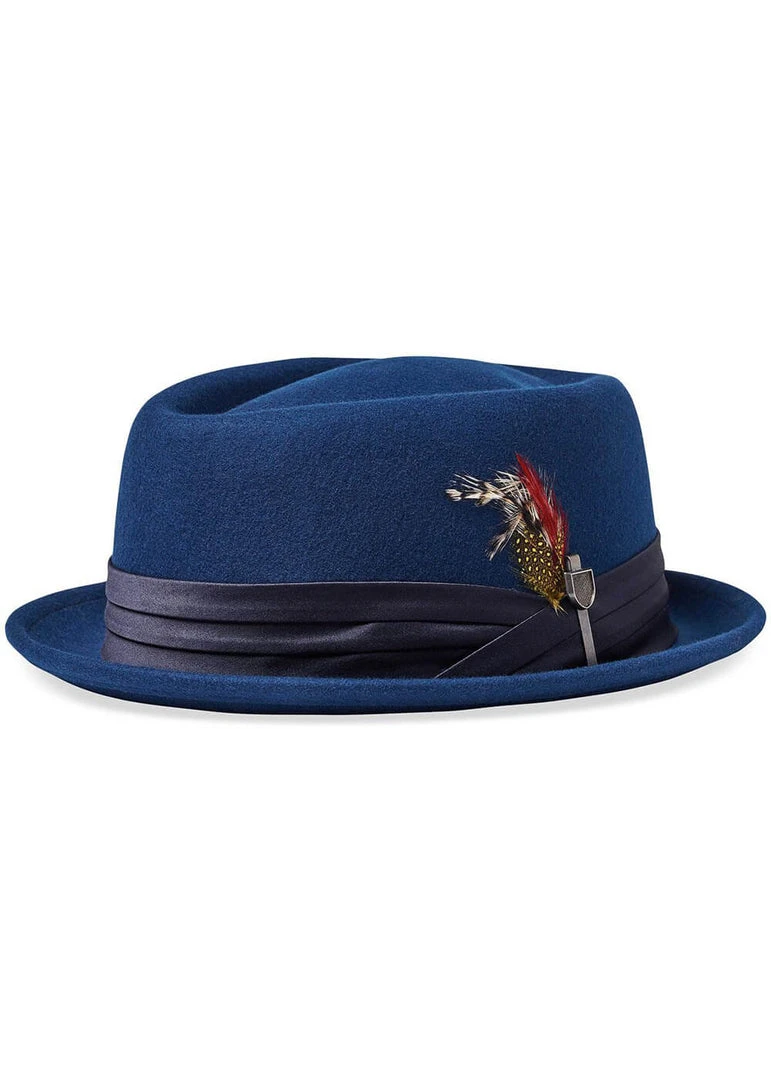 This convenient hat is one you easily put on as you’re walking out. With it’s stylish shape it matches just about everything. The edge is embellished with a satin folded band, attached is a metal Brixton detail with a few feathers poking up behind it. These feathers are a detachable detail, and can be placed on every desired place or be removed.
