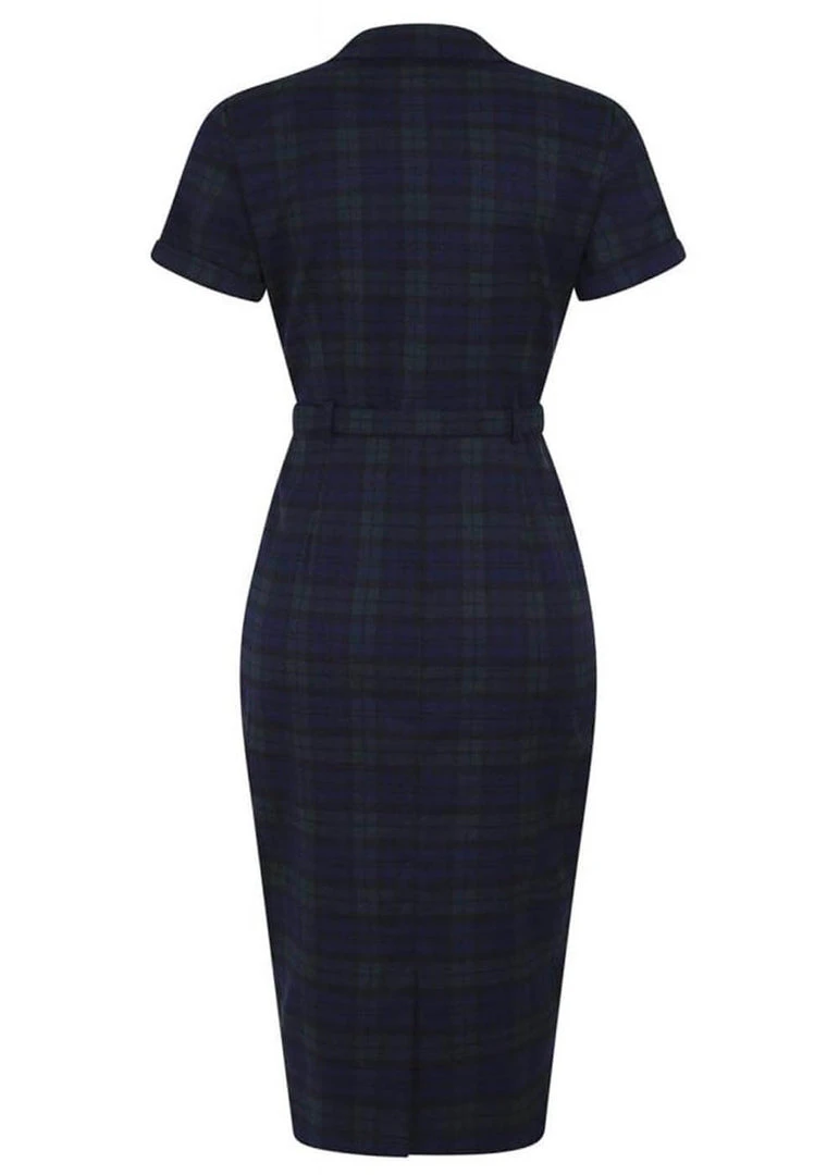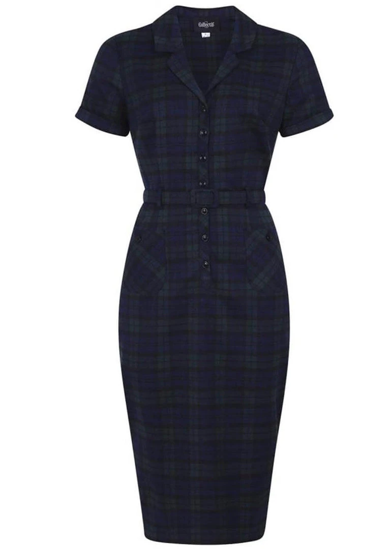 Caterina has been one of our most popular models for years and every new season we look forward to the new ones! She looks lovely and cozy with her green tartan. Because of her slight stretch she feels like a dream to wear and is gorgeously formfitting. She closes with the buttons for a timeless shirt-look, down from which she continues down to the knee with a height of 1,70. The waist is accentuated by the belt, for that Vavavoom 50’s line. She even has little pockets!