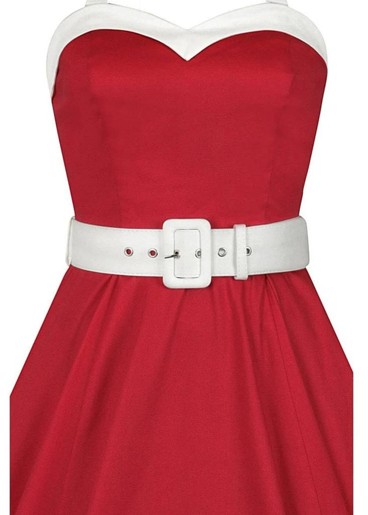 From the waist, which you conveniently accentuate with the wide white belt, she continues into a spectacular swing skirt with a cheerful white edge, which you can gorgeously combine with one of our petticoats. She closes with a zipper on the back and with a height of 1,70 she reaches down over the knee.