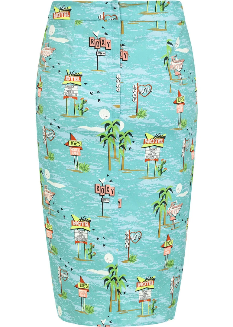 The Kala skirt takes you to an exotic hotel, even if it’s in your own closet! From the waistband without stretch, this gem has an overlap in the front, which creates a tulip-shape. That is not only very much tiki, but also incredibly handy 😉 This skirt is made of a beautiful cotton-mix with slight stretch, closes with a zipper in the back and for a height of 1.70m, she ends around the knees.