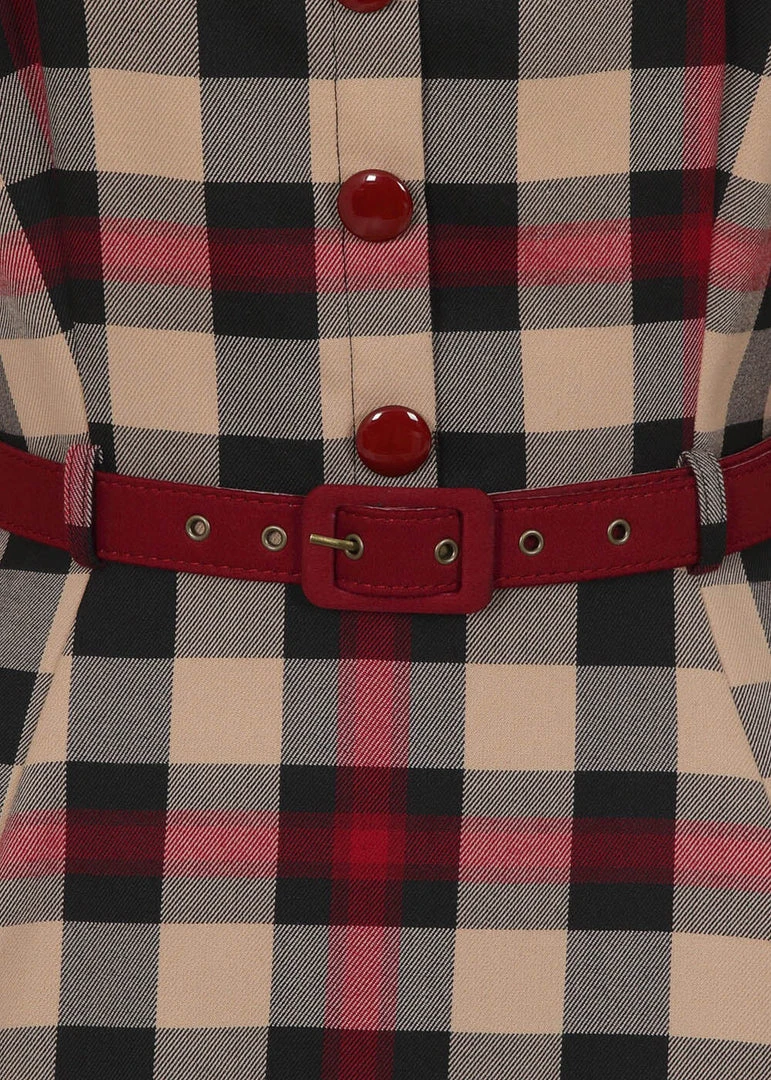 The waist is accentuated by the removable belt, before she flares into a full skirt with pockets and ends below the knees for a height of 1.70m. Gorgeous with one of our petticoats for an extra festive vintage look.