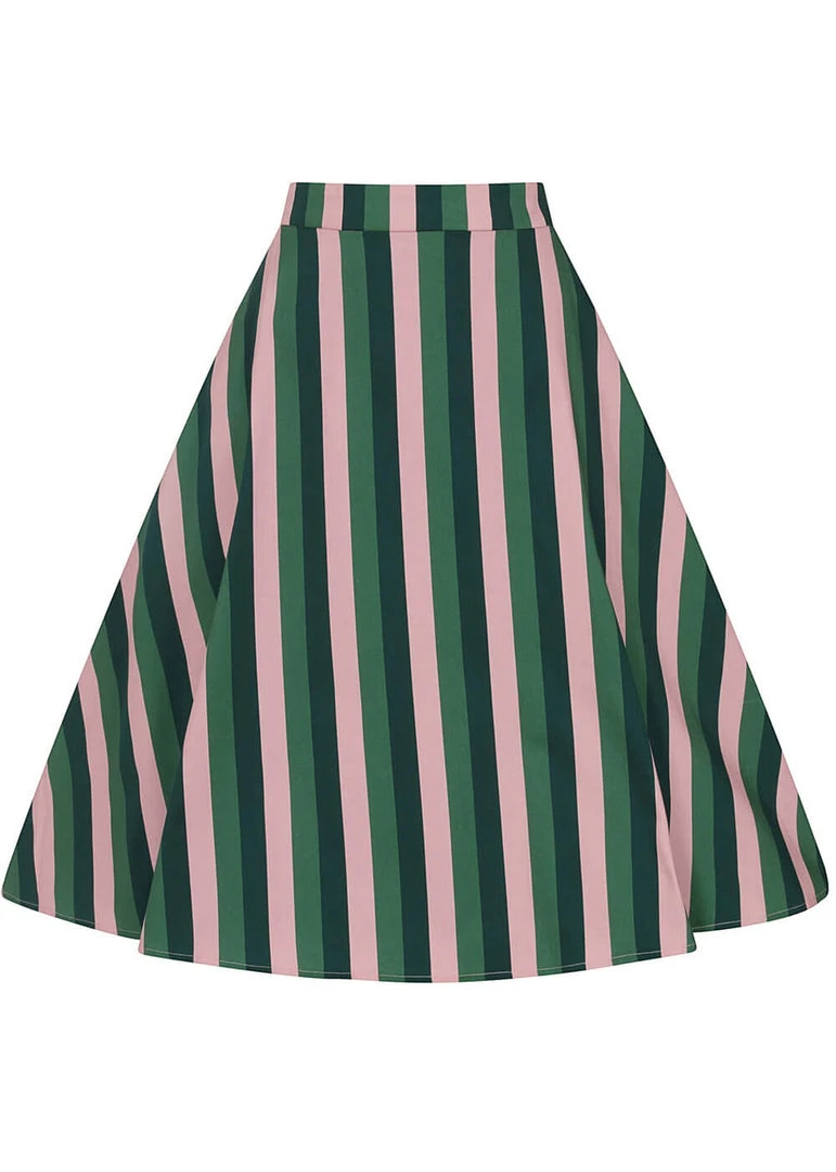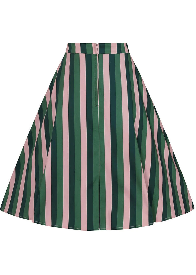 Mattie is the perfect partner to turn all your tops into an extraordinary look. This beauty is worn in the waist, down from which she flares out into a lovely full skirt with pockets. Gorgeous when worn with one of our petticoats to make those stripes stand out. She closes with a zipper on the back and with a height of 1,70 she reaches down to the knees.