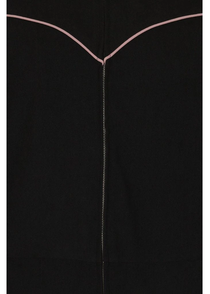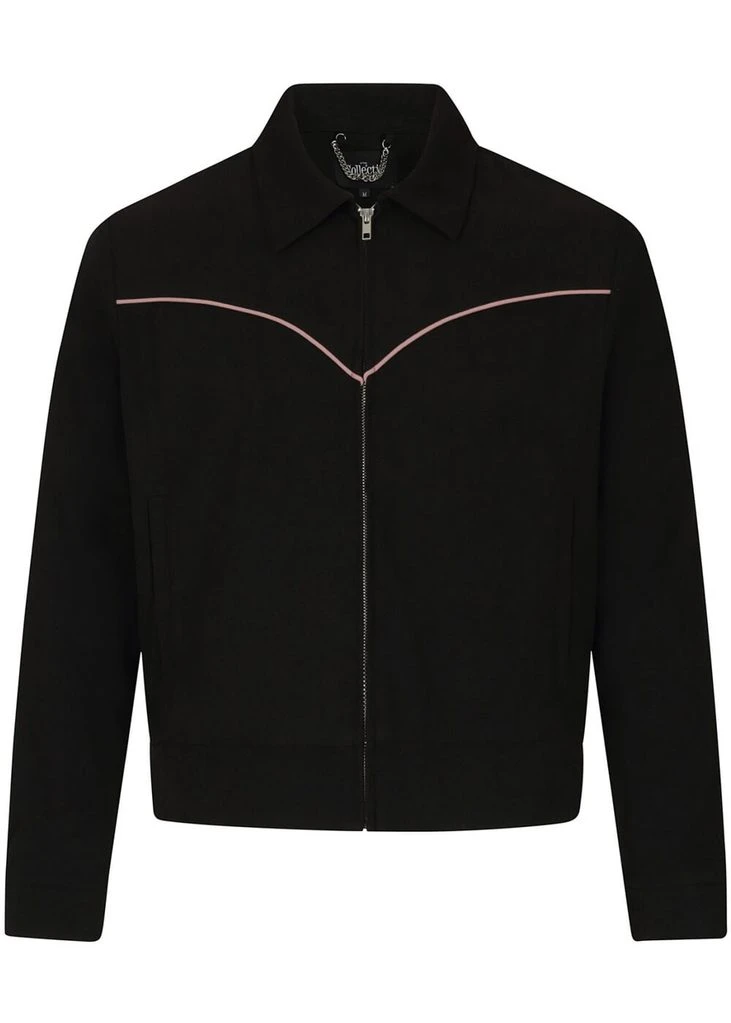 With its mix of faux suede and subtle pink piping this is a striking jacket! This straight, short cut is inspired by the rebel jackets from the 50’s and has an oversized, relaxed fit. It’s entirely lined, closes with a silver coloured zipper on the front, has an inside pocket and 2 regular pockets.