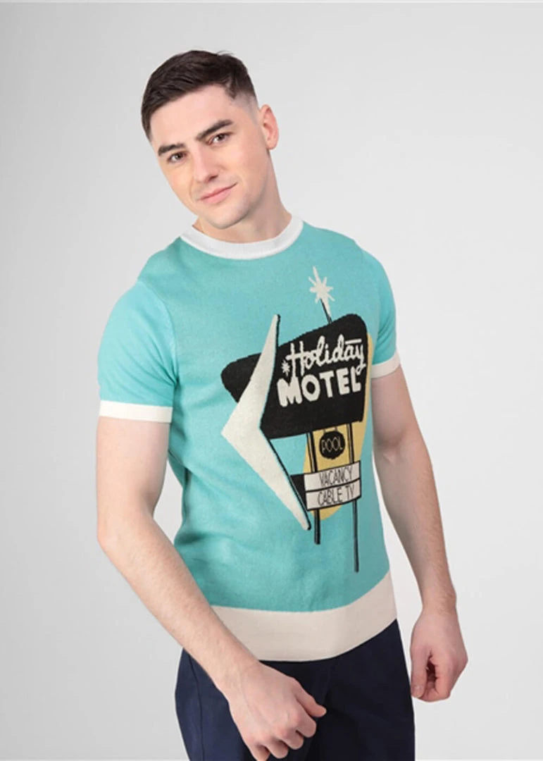 You’re seeing it right, this showstopper is made of a soft, knitted cotton giving it a slight stretch without being itchy. The white edges on the sleeves, top and bottom are ribbed to ensure a nice fit.