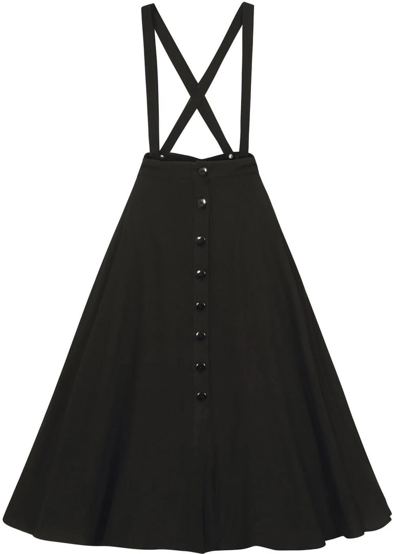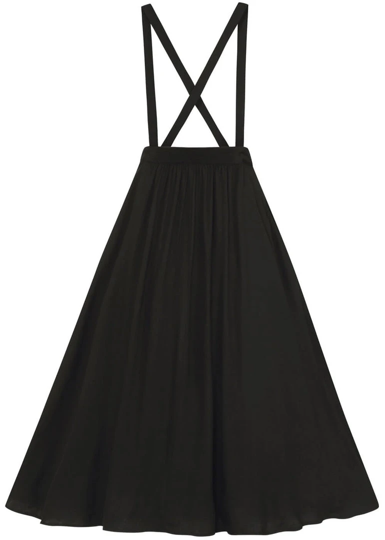 Morgan is made of lovely lightweight viscose without stretch, that happily dances along with your every move. And you can’t not dance with these cute heart-shaped buttons she closes with! The shoulder straps are detachable, for even more options… From the waist, she flares into an elegant skirt that ends about halfway down the calves for a height of 1,70m.