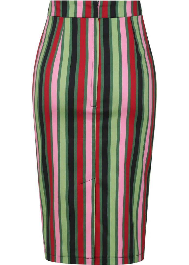 This amazing high waist skirt is made of a stunning cotton-mix with a slight stretch, ensuring a Vavavoom fit. On the back she has a slit, and just above that she has a zipper. With a height of 1,70 she reaches down to the knee.