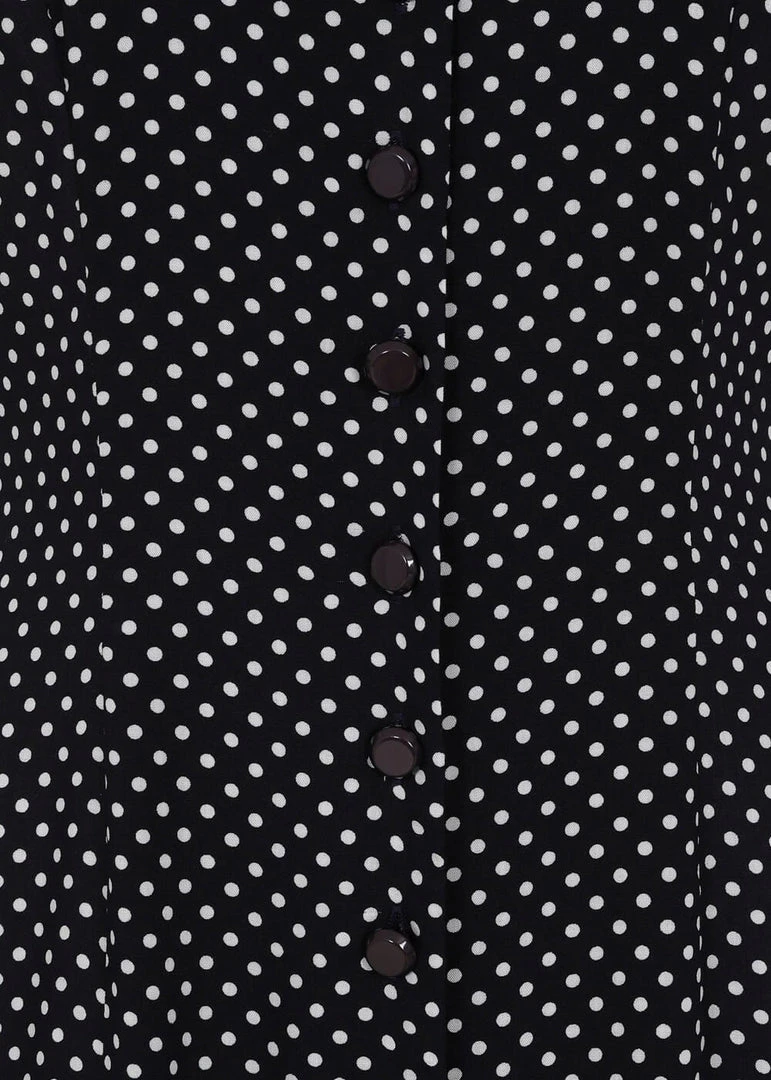 Riley has a beautiful fit because of the continuous princess seams, with a row of smooth buttons that she closes with across the whole mid-section. They’re all functional, so you can leave some of them open if you feel like showing some leg 😉 For a height of 1.70m she ends below the knees.