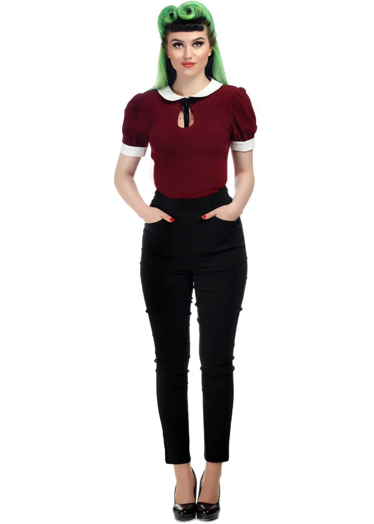 These fresh cigarette trousers are made of a beautiful cotton-mix with a slight stretch. She closes with a zipper on the back. Whether you wear them with an elegant blouse, a nice old t-shirt or a Dolores Top, it’s a match!