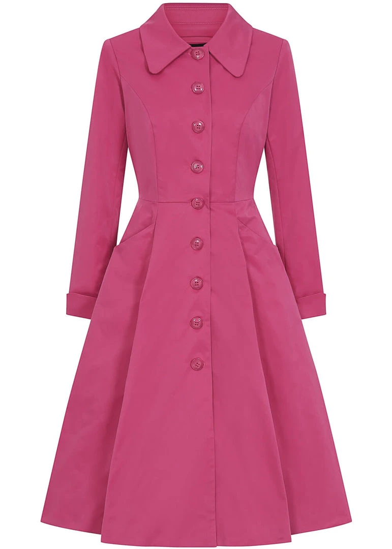 The smooth buttons perfectly match the slightly glossy fabric with fine stretch, and the colour completes the pink-powerwoman-look. Oh yes, and pockets of course 😉 the princess seams in the bodicem ake for a lovely fit, before she flares elegantly from the waist seam, so you can perfectly wear her over a dress with a petticoat.