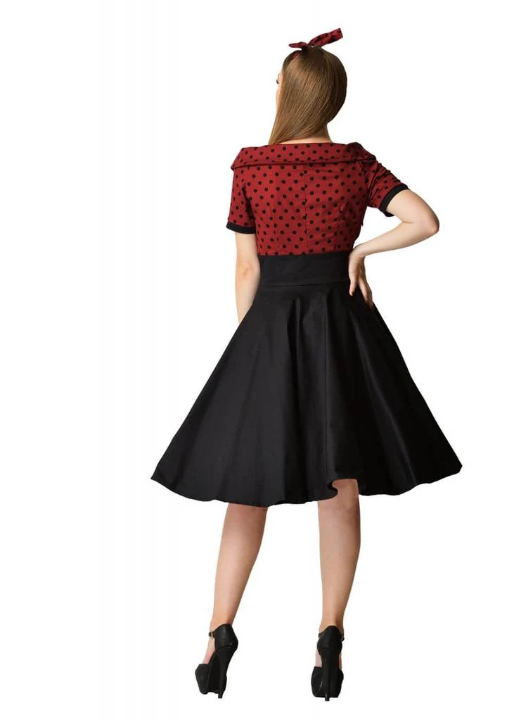 From the waist down she flares out into a full skirt, which you can perfectly combine with one of our petticoats for that perfect vintage look. With a height of 1,70 she reaches down to the knee. She can be closed using the zipper and is made of cotton with a slight stretch.