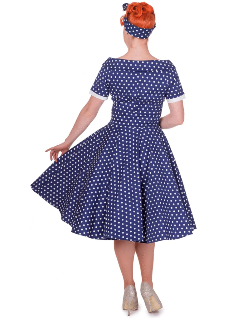 Darlene appears so lovely and fresh with her cheerful blue bodice and small polka dots!