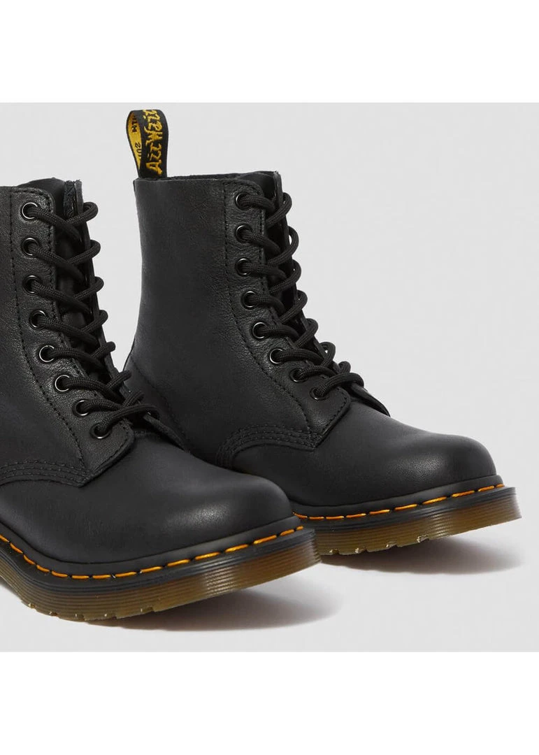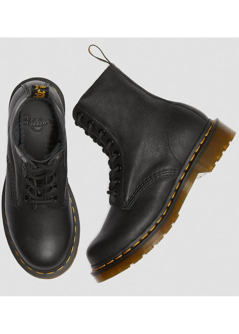 Pascal is based on the original 1460 Dr. Martens with 8 holes and the recognizable yellow stitching and detachable inner gel sole. The Virginia boots have no stitched upper edge that makes them easier to wear. Especially with their soft leather. You’ll be amazed!