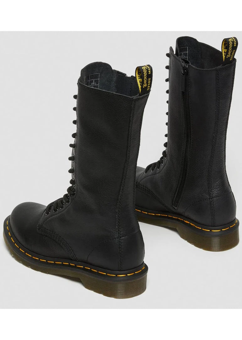 The 1B99 keeps going up and up with her 14 shoelace holes! The iconic yellow stitching also can’t be missed off course. The Virginia leather is nice and flexible and the has a soft lined structure. These boots open and close with a zipper and the inner gel soles can be taken out.
