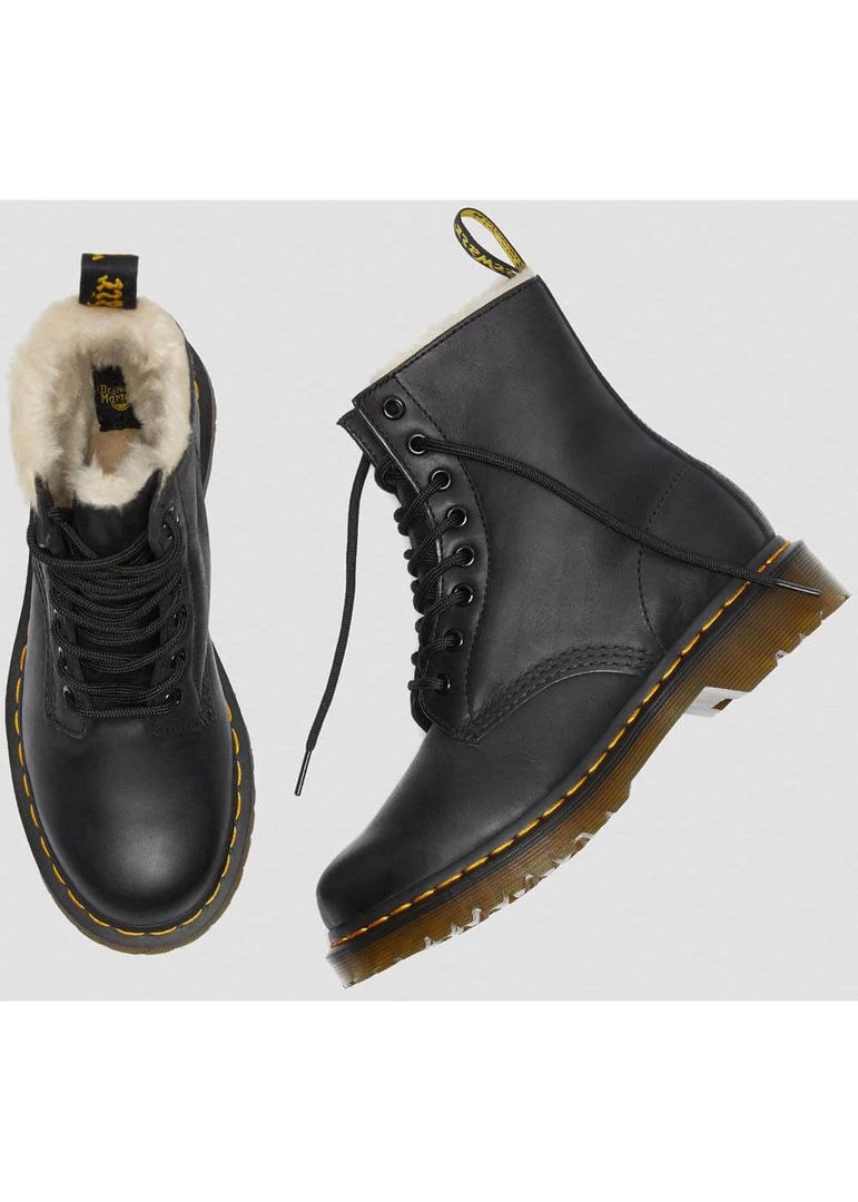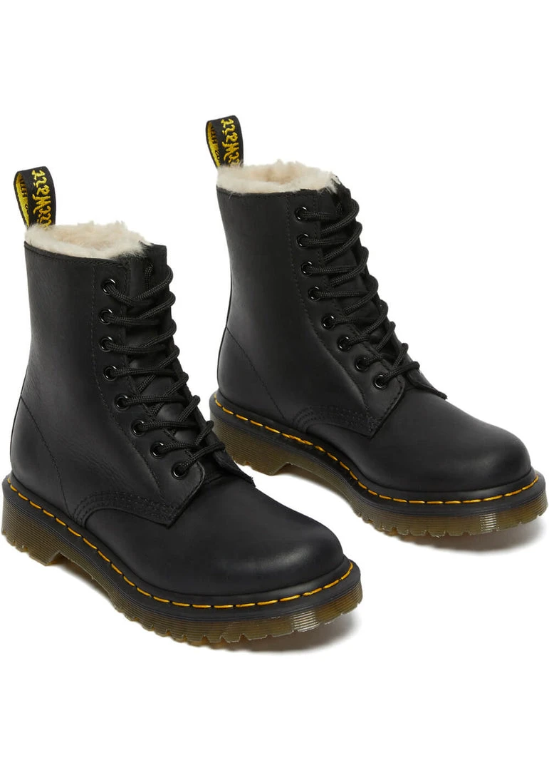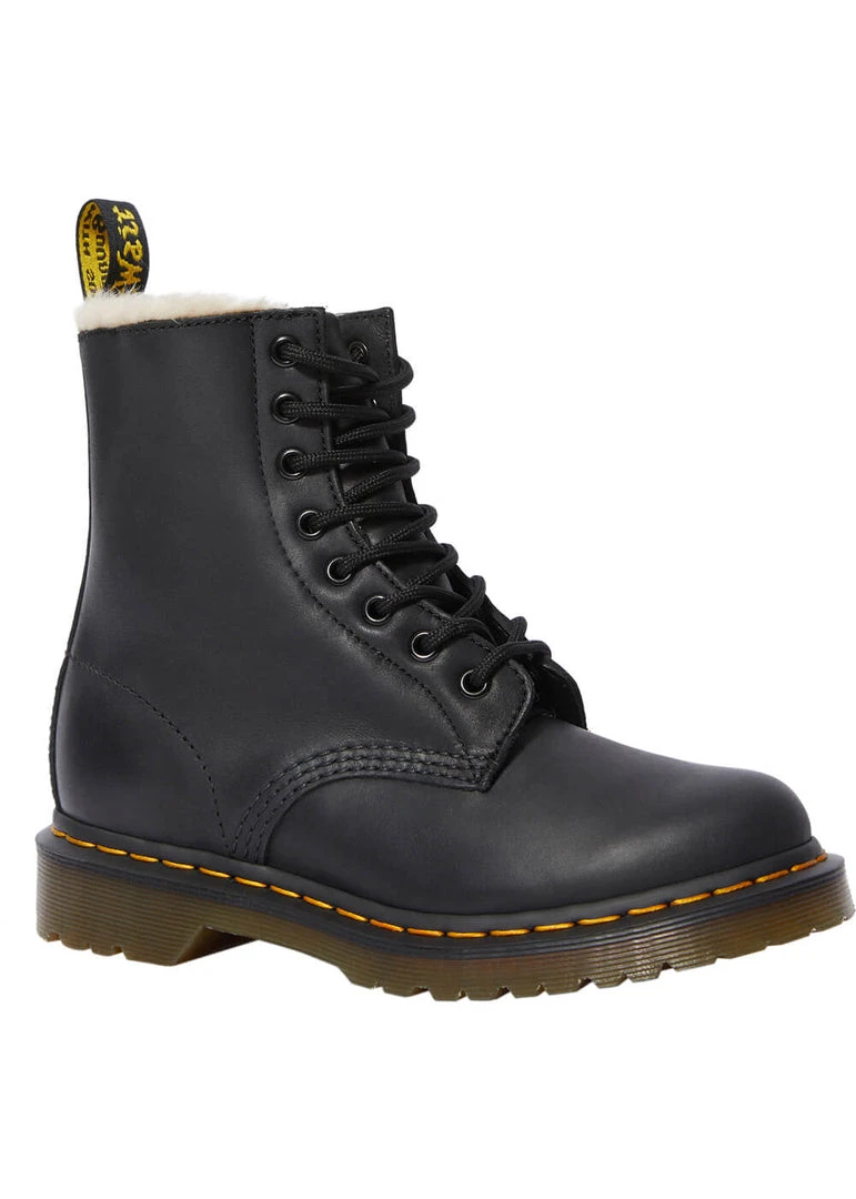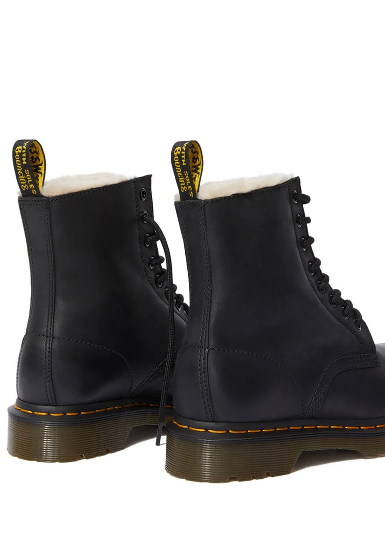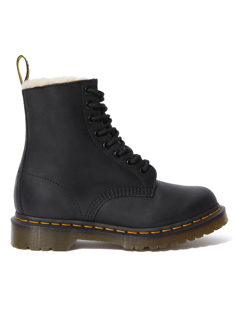 You can conquer the world this fall with Serena! This lovely boot is derived from the 1460 model with 8-grommets, stitched upper edge and recognisable yellow seams. The Burnished Wyoming is a soft leather which feels less sleek. The entire inside is lined with a lovely imitation fur, so you can get your feet through winter save.
