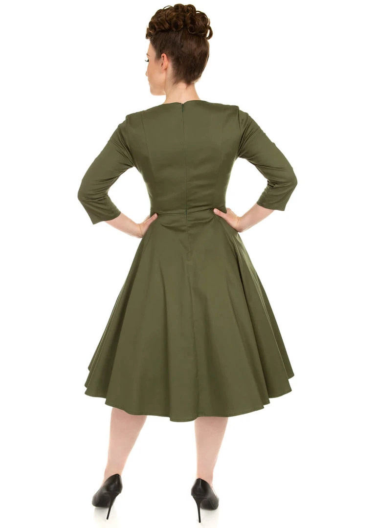 Hearts & Roses Angelina 50’s Swing Dress Khaki Green New In