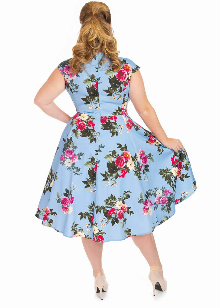 Hearts & Roses Jolene Floral 50’s Swing Dress Blue