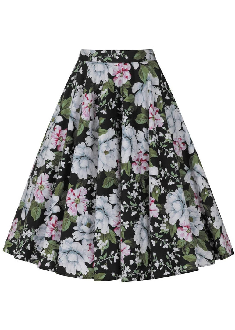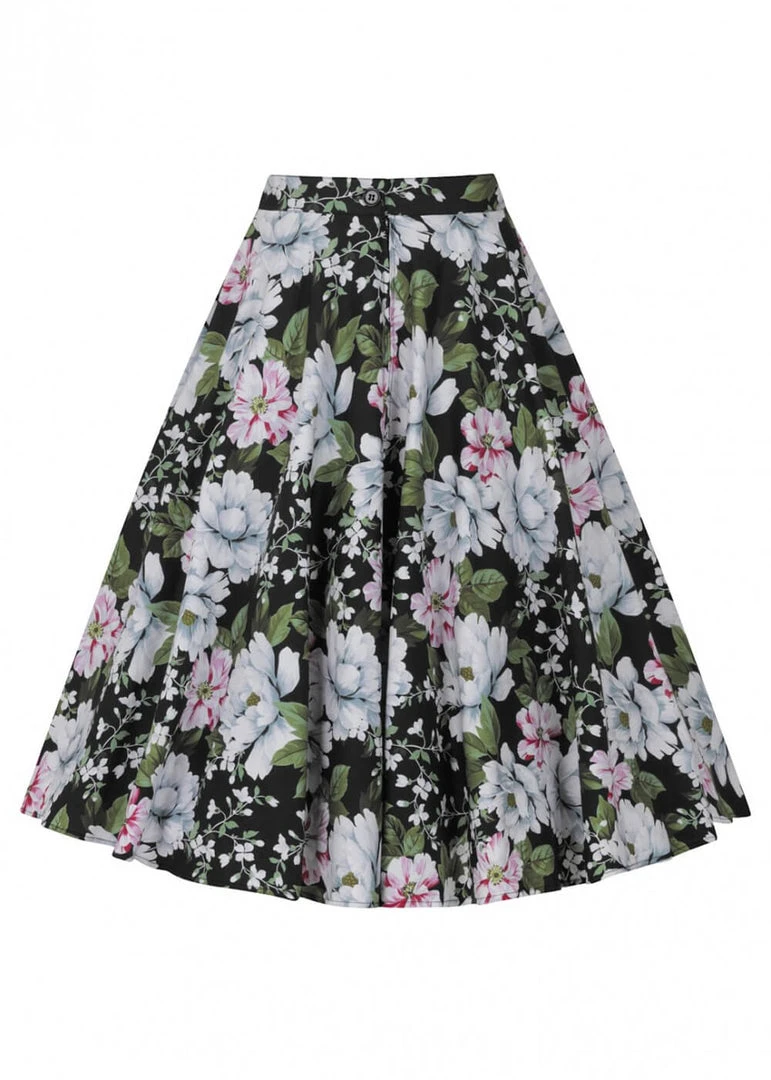 This classic beauty is made of an airy cotton-mix in a full circle skirt with pockets, making the flowers almost fly off when you’re swinging! The waistband has no stretch and ofcourse she’s perfect for combining with one of our petticoats to make those flowers blossom. With a height of 1,70 she reaches down below the knee and closes with a zipper on the back.
