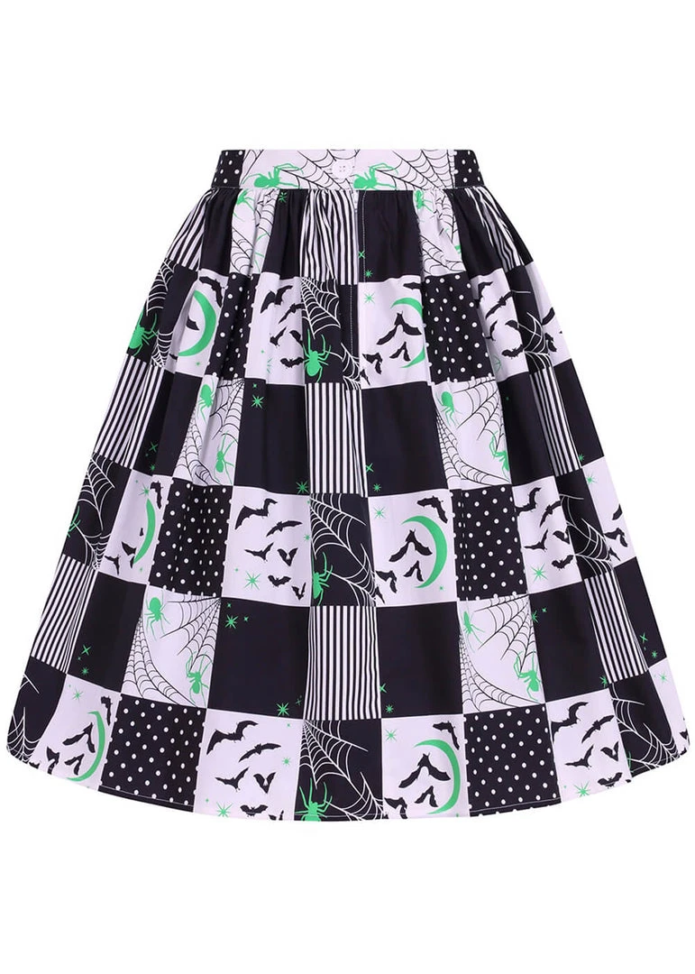 Hell Bunny Annie Bats 50’s Swing Skirt Black White New In