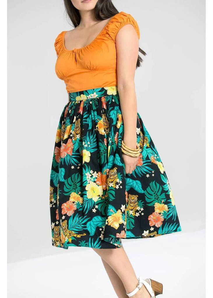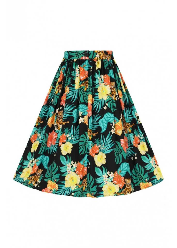 It doesn’t get much more tropical than Bali, this beauty proves that… From the waistband she continues through pleats into a full skirt with pockets, and is perfect for wearing with one of our petticoats to make that jungle come to life. With a height of 1,70 she reaches down over the knee and closes with a zipper and button on the back.