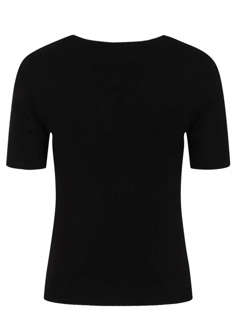 This playful wink towards their spooky collecties feels lovely to wear with her knitted viscose-mix with stretch making you want to wear her all year round. The bat is embroidered and the ribbed edges around the sleeves and bottom ensure a beautiful fit.