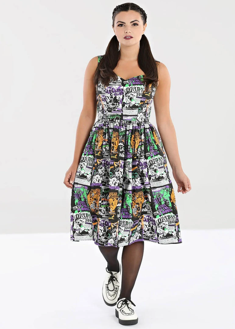 Just kidding, fall in love like we did with the Be Afraid print, inspired by B-horrormovies! The colours orange, white and green match the special motives perfectly.