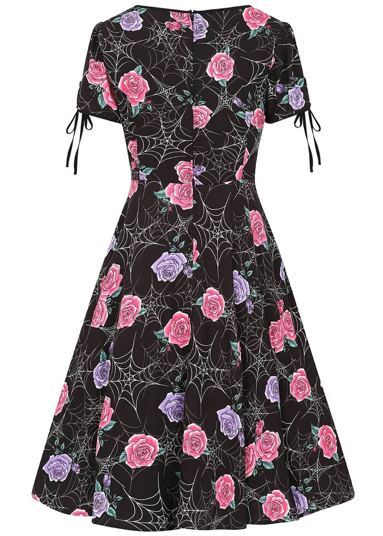 Hell Bunny Eloise Spiderweb 40’s Mid Dress Black