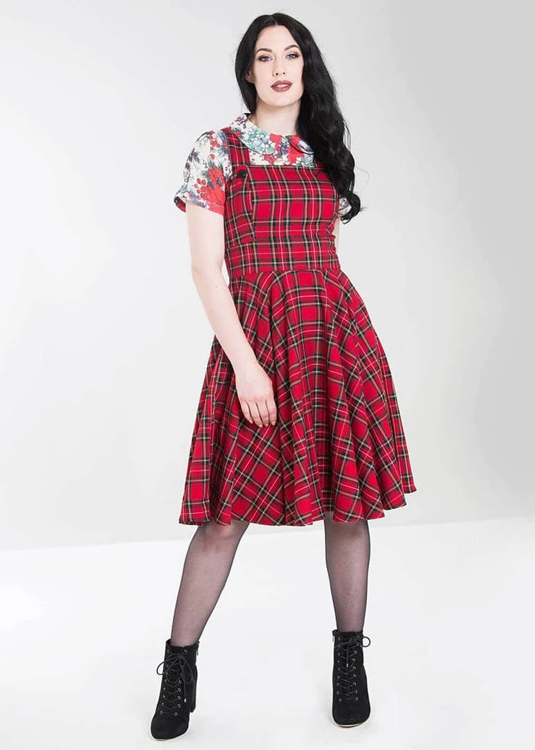 Pinafore dresses are so perfect for the Dutch weather, because you can endlessly combine them with cozy jumpers or an elegant blouse like on the images! This tartan version by Hell Bunny is right up our alley, with a fierce tartan motive with a slight stretch. The shoulderstraps cross on the back so they don’t fall off your shoulders. Because of the buttons you can adjust the straps with 7 cm.