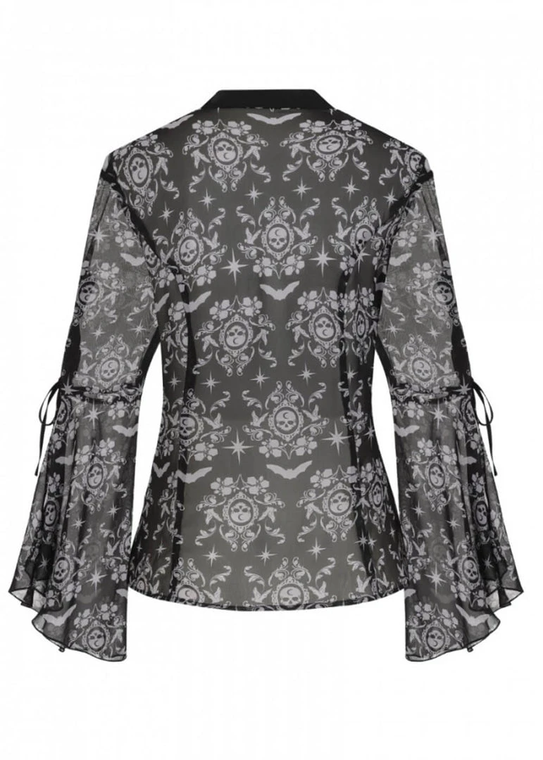 This extraordinary pretty blouse is made of an elegant semi-transparent chiffon without stretch. The special sleeves are open from the ellbows and dance along when you move your arms. The pussybow is a wink towards the 40’s. She closes with smooth buttons in the front.