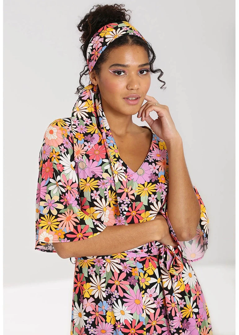 Relax underneath the flowers, becuase her 100% viscose are nicely breathable… The playful v-neck transforms into short sleeves.