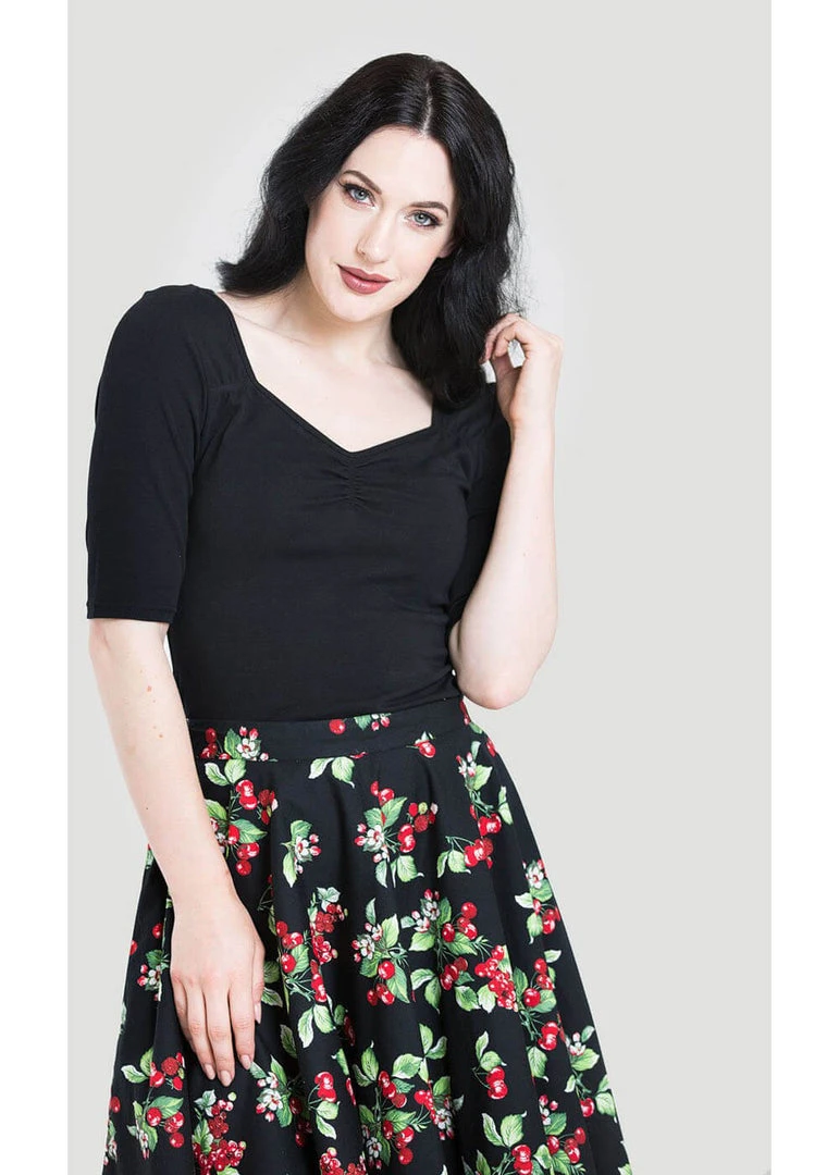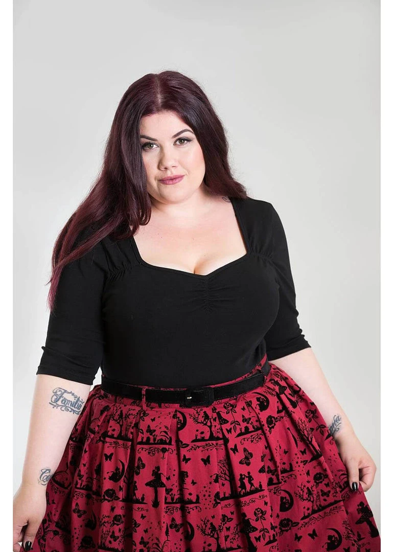 The pleated details on the chest add a neckline you can’t ignore! She is made of a beautiful quality jersey with a slight stretch and reaches down to the waist, you never have to worry about what you’re going to wear with all your skirts.