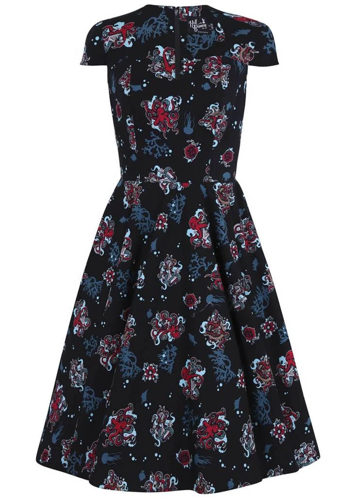 Hell Bunny Poseidon 50’s Swing Dress Black New In