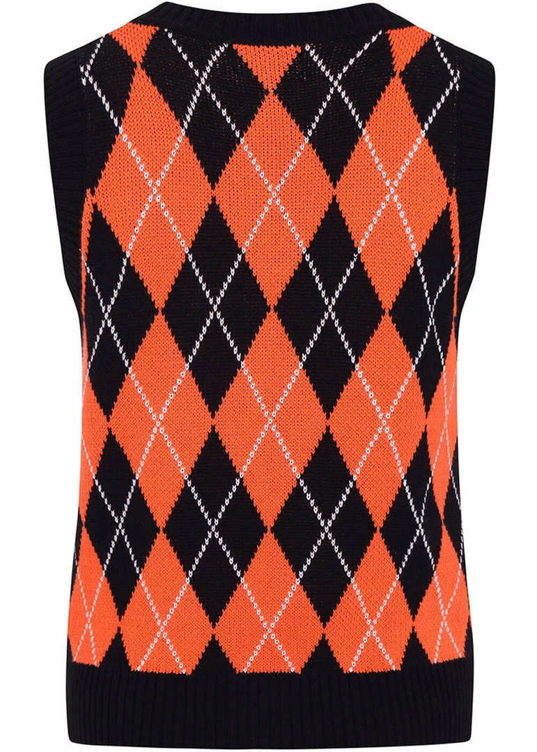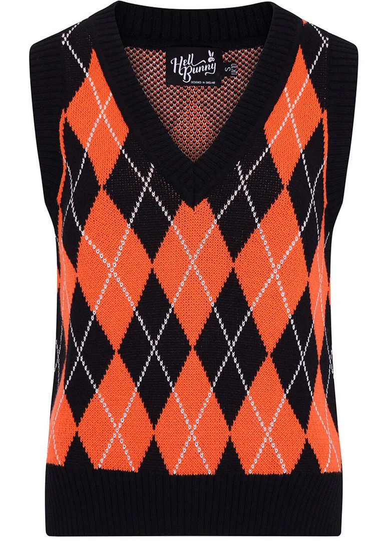 Hell Bunny Rhombus Vest 60’s Top Black Orange New In