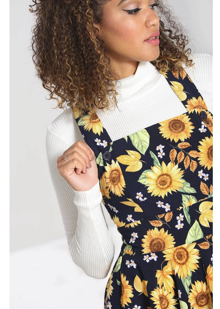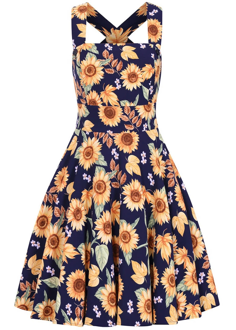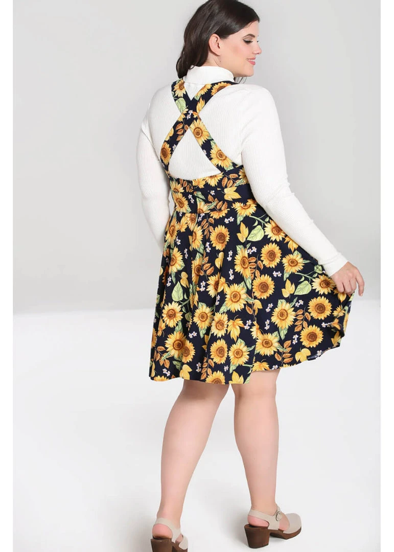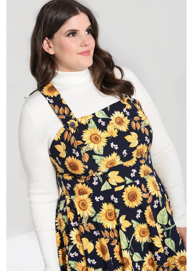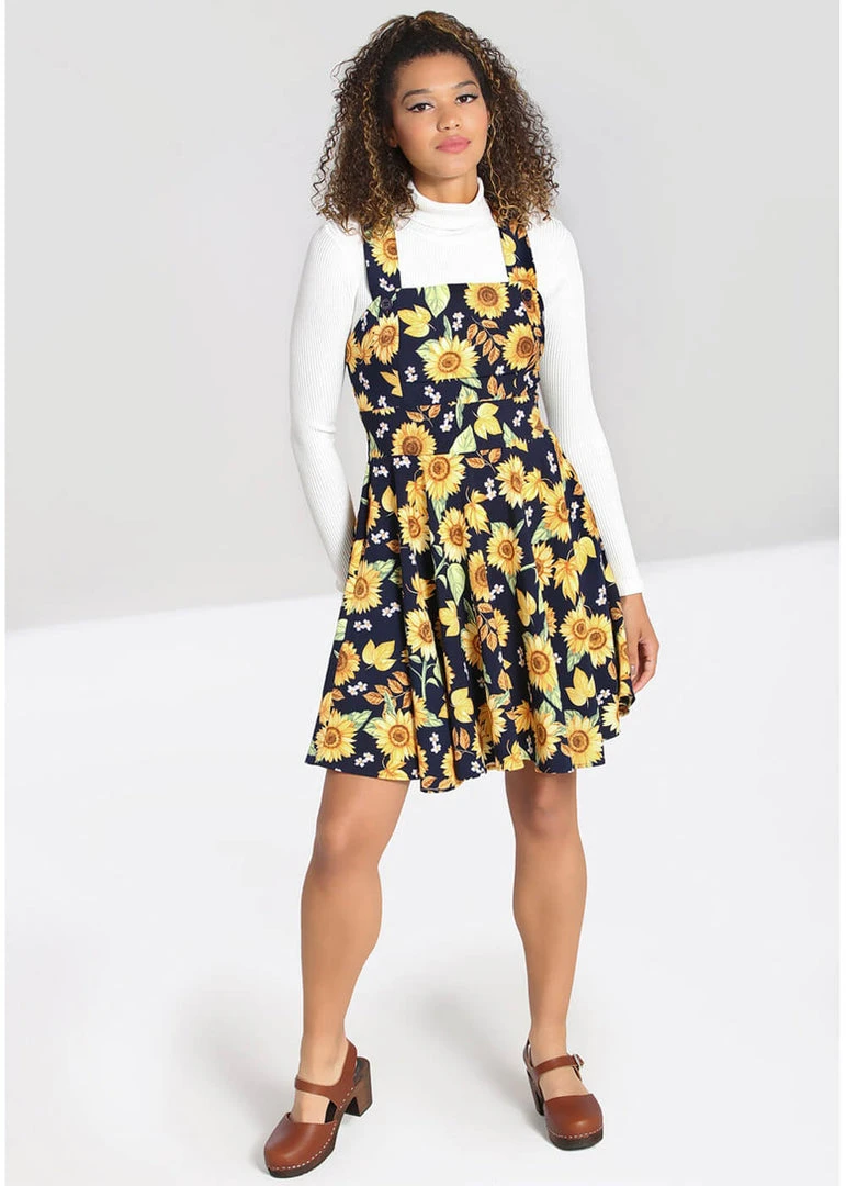 This sunflower version by Hell Bunny is right up our alley, with her smooth fabric with slight stretch. The shoulderstraps cross on the back so they don’t fall off your shoulders. Because of the buttons you can adjust the straps with 7 cm.