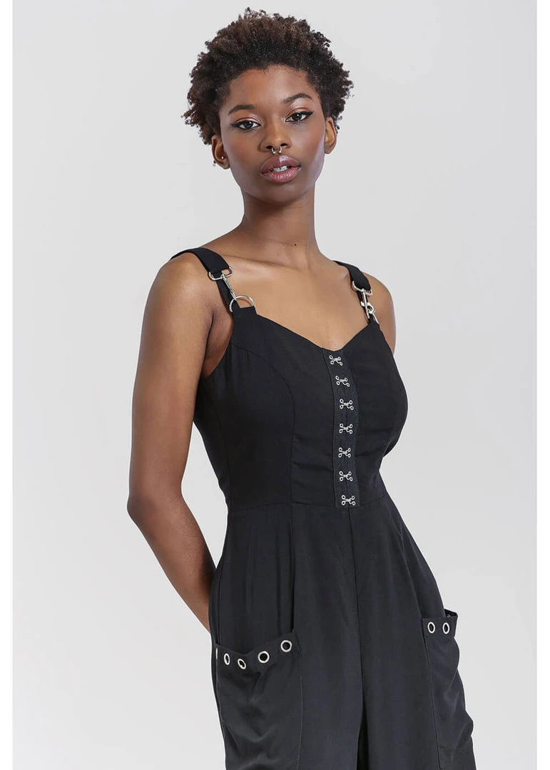 From the waistband, she flares into wide trouserlegs that for a height of 1.70m end above the ankles and she closes with a zipper in the back.