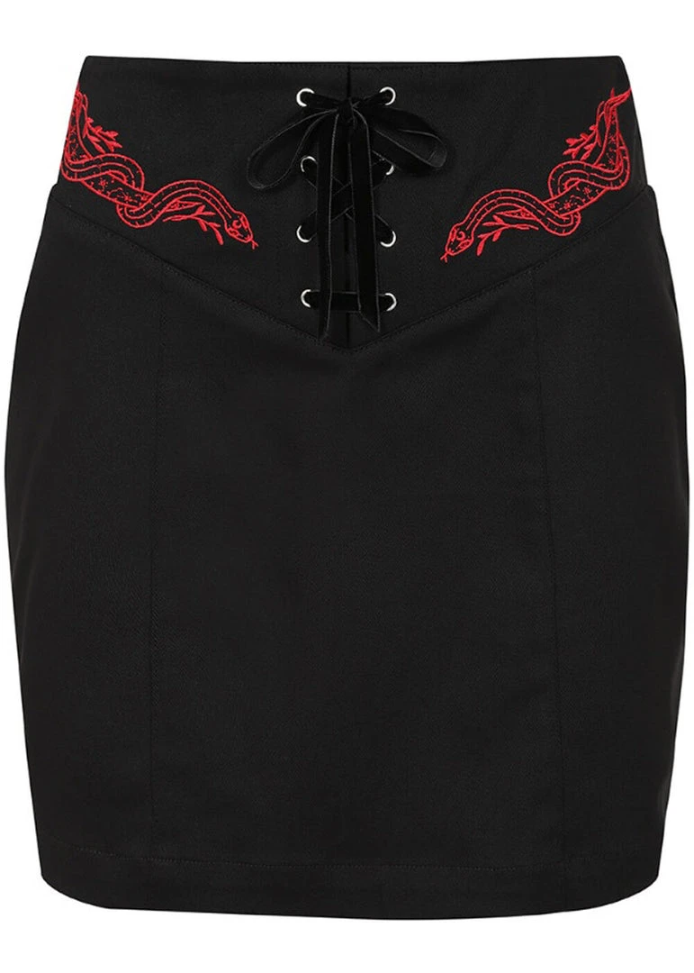 Hell Bunny Tallulah Snake 60’s Mini Skirt Black