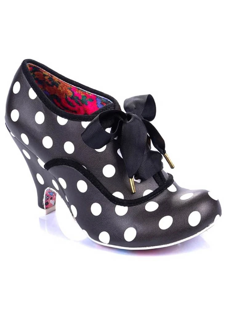 The polkadots can’t be missed, but have you noticed that continues 9,5 cm heel? Woah! She’s made of a beautiful quality faux leather on which the colours are incredibly striking.
