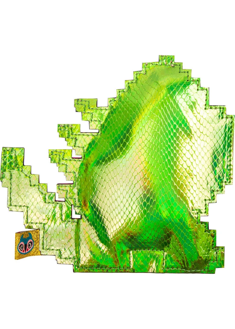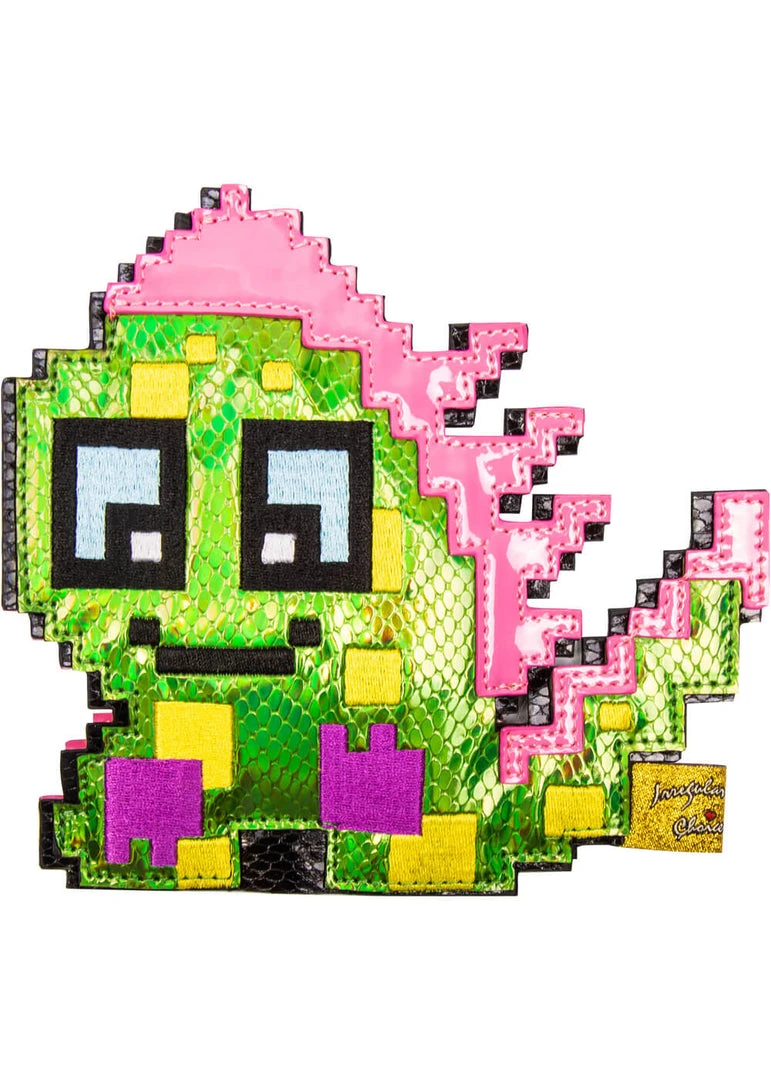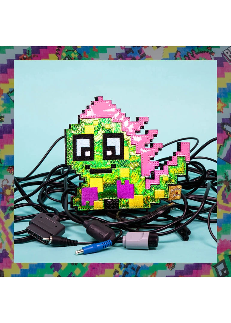 Ofcourse she’s handy for storing your change and folded bills, but let’s be honest here: she’s simply adorable with her pixel-shape, shimmering metallic, and equally shimmering embroidery! She closes with a zipper on the left side.