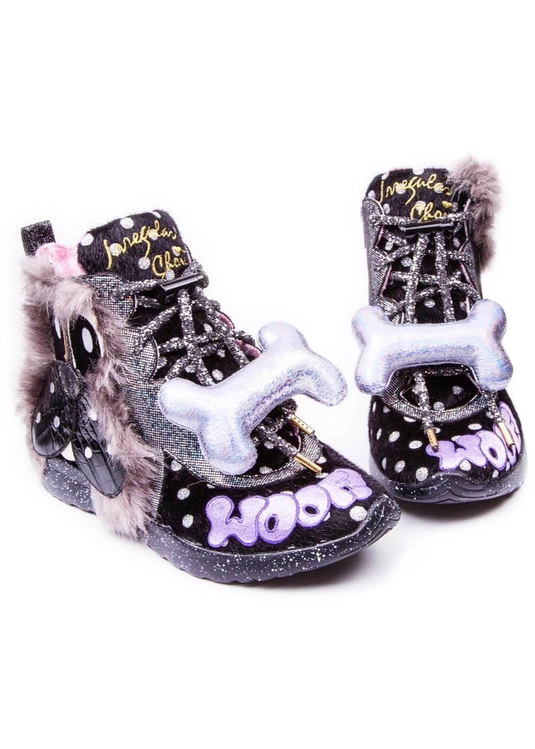 What a Good Boy he is, so sweet and always at your heel! While one side is decorated with an irresistible face, the other side is wagging its tail. They close with shoe laces, and with the padded bones that are tangled into them, there’s a good chance you’ll attract other good boys, too 😉