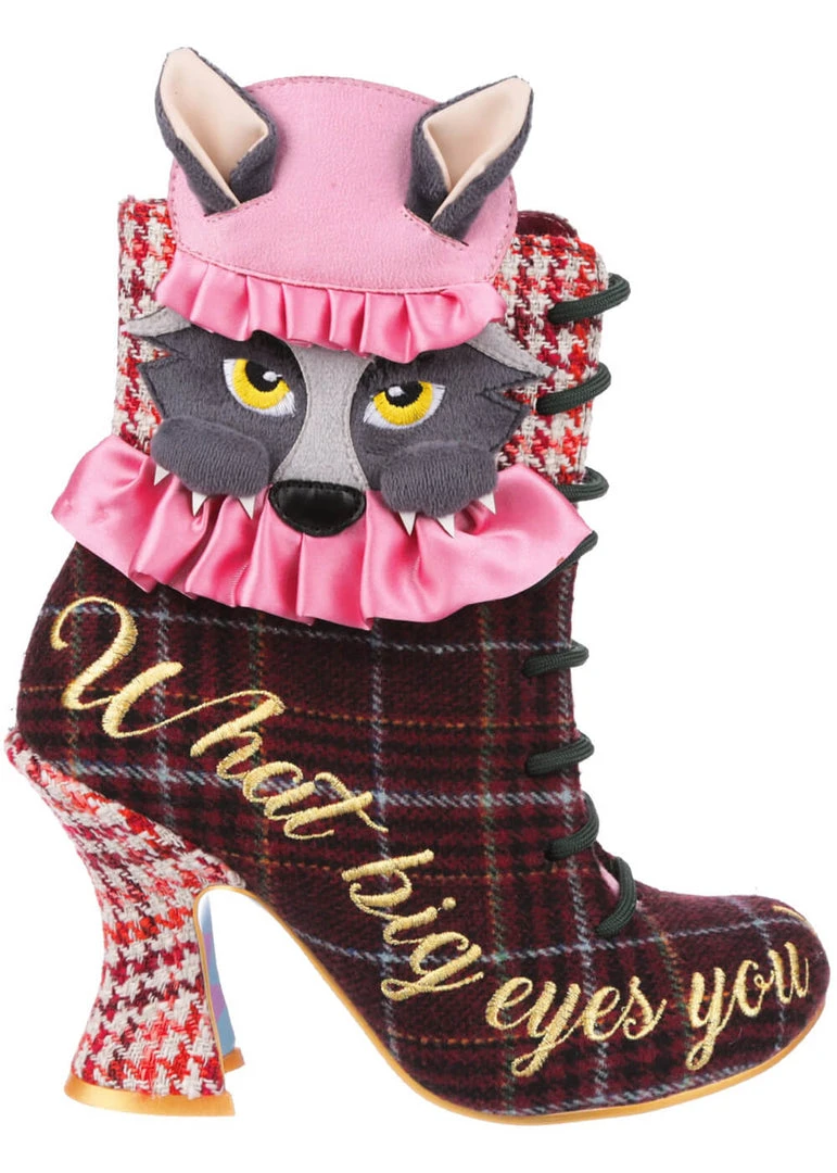 The boots themselves are super stylish for autumn, with tartan and houndstooth on lovely warm textile. Even the … cm heel is covered with it and is comfortable to walk on thanks to the soft footbed. The laces along the front complete the picture, but they’re closing … . You can preserve the joyful print on the soles with the special Irregular Choice Sole Protectors.
