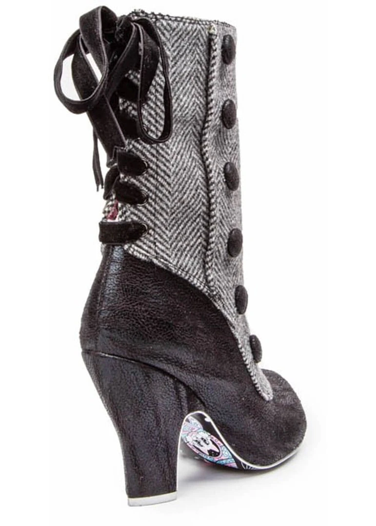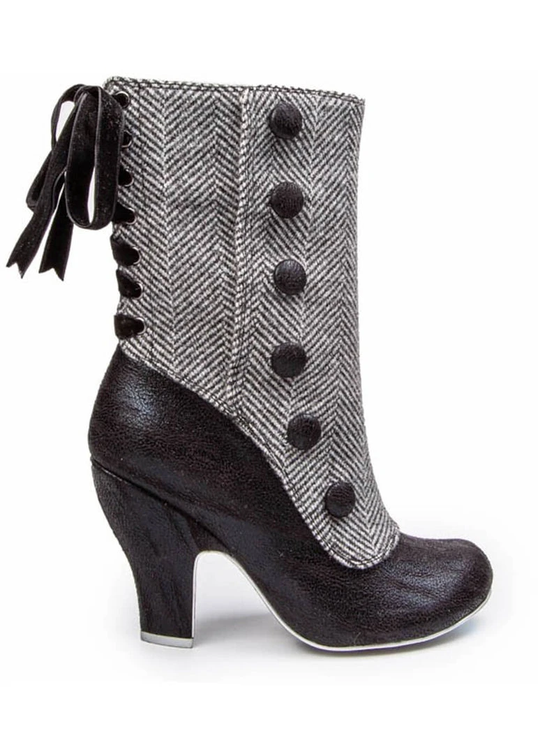 Irregular Choice Reinette Herringbone 60’s Boots Black