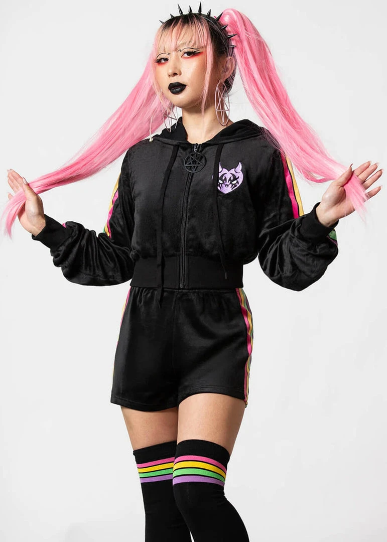 Killstar Coven Chill Rainbow Velour Hoodie Black
