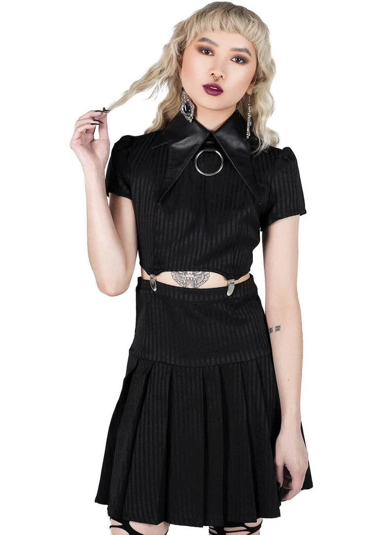 Killstar Darita 80’s Suspender Dress Black Pinstripe